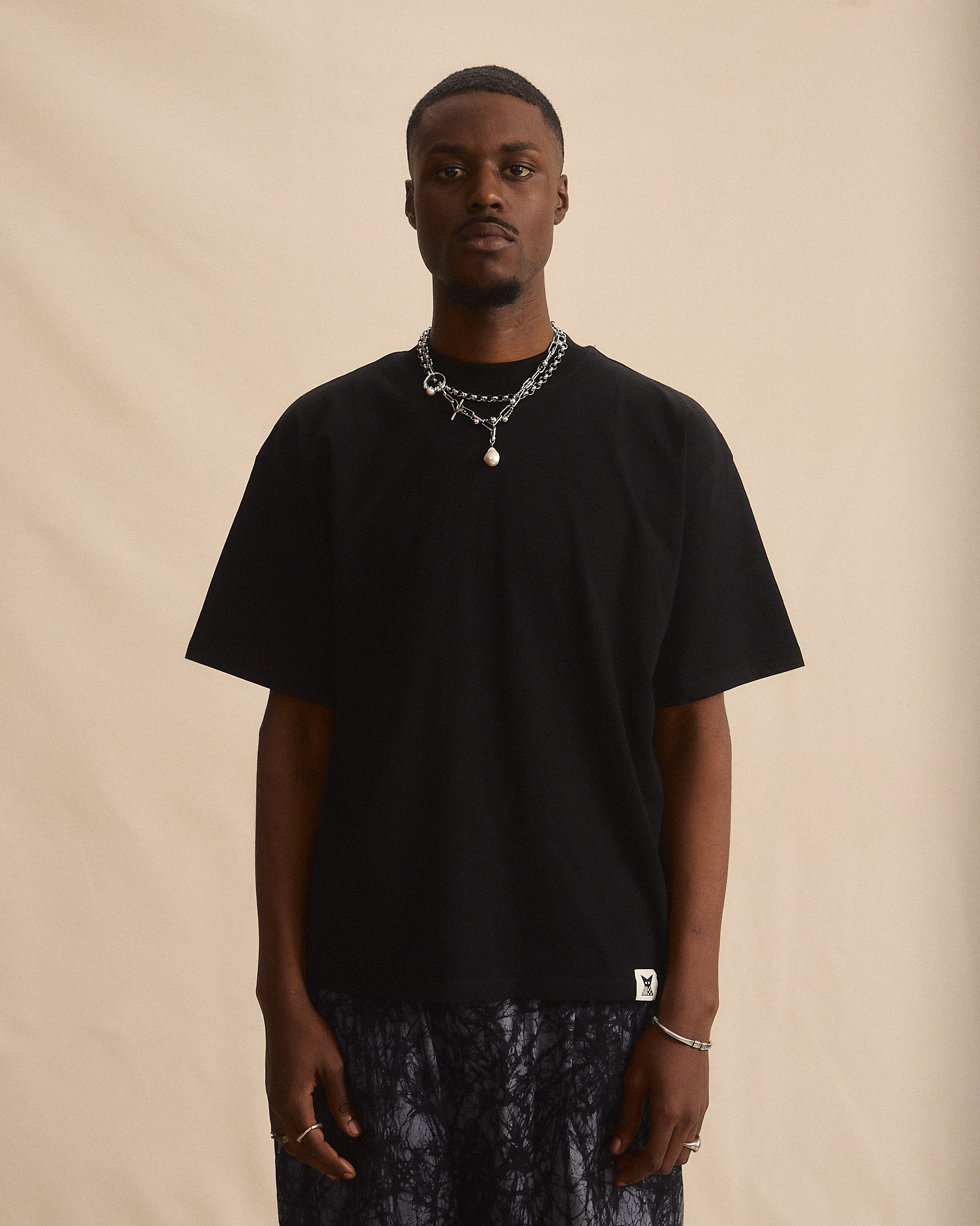 Crafted from 200 GSM 100% organic cotton, our T-shirt offers a slightly cropped, boxy fit with a structured yet relaxed drape. Designed with a ribbed high neck collar for a modern edge and finished with an appliquéd batik back patch, adding our signature artisanal touch to the clean silhouette.
