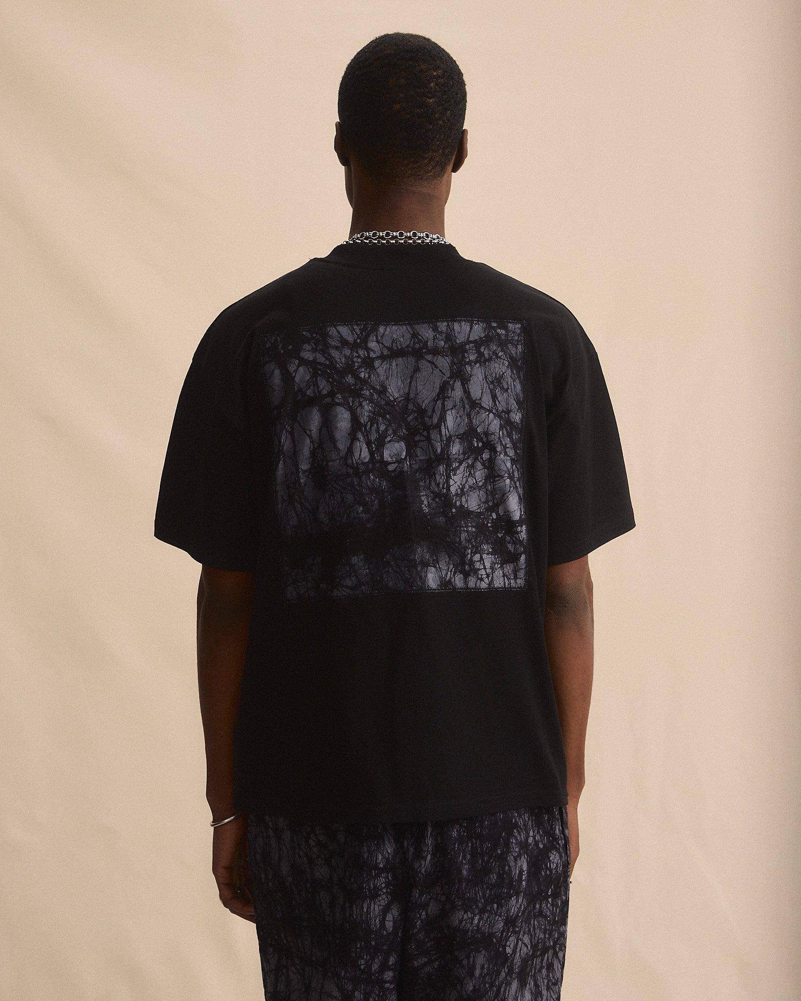 Batik Back Patch T-Shirt - Black w/ Black/ Grey Marble