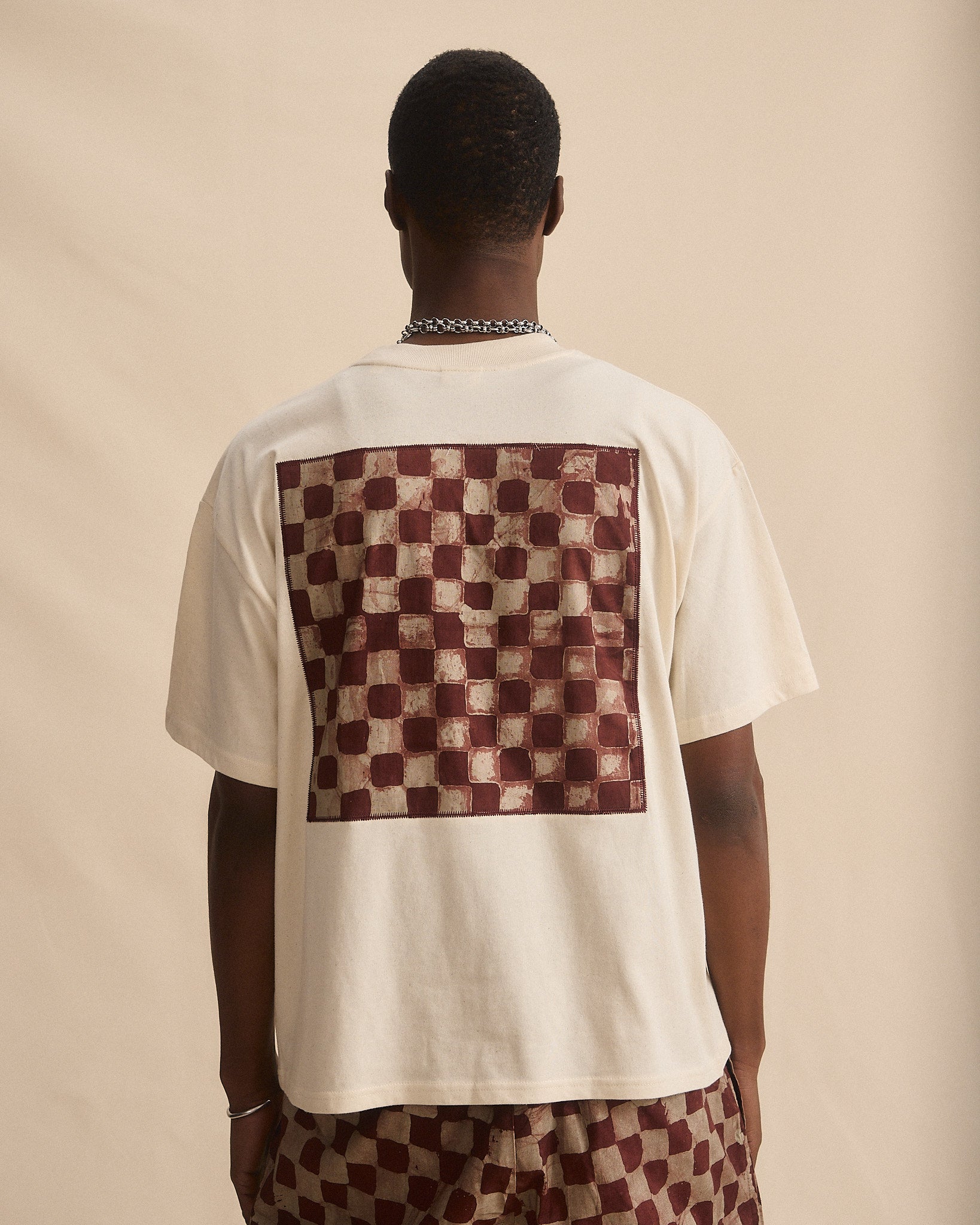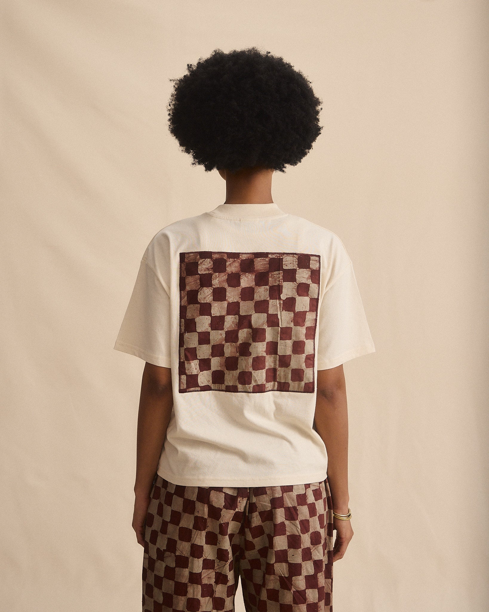 Batik Back Patch T-Shirt - Raw w/ Brown/ Beige Check